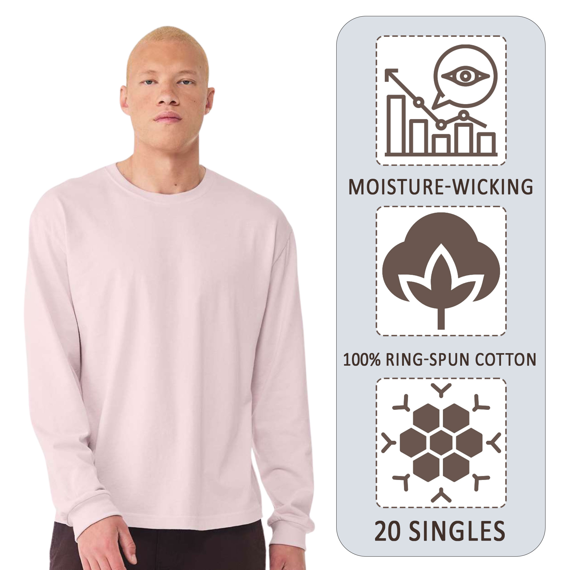 - 6 oz. (US), 10 oz./L yd (CA), 100% Airlume combed and ring-spun cotton, 20 singles
