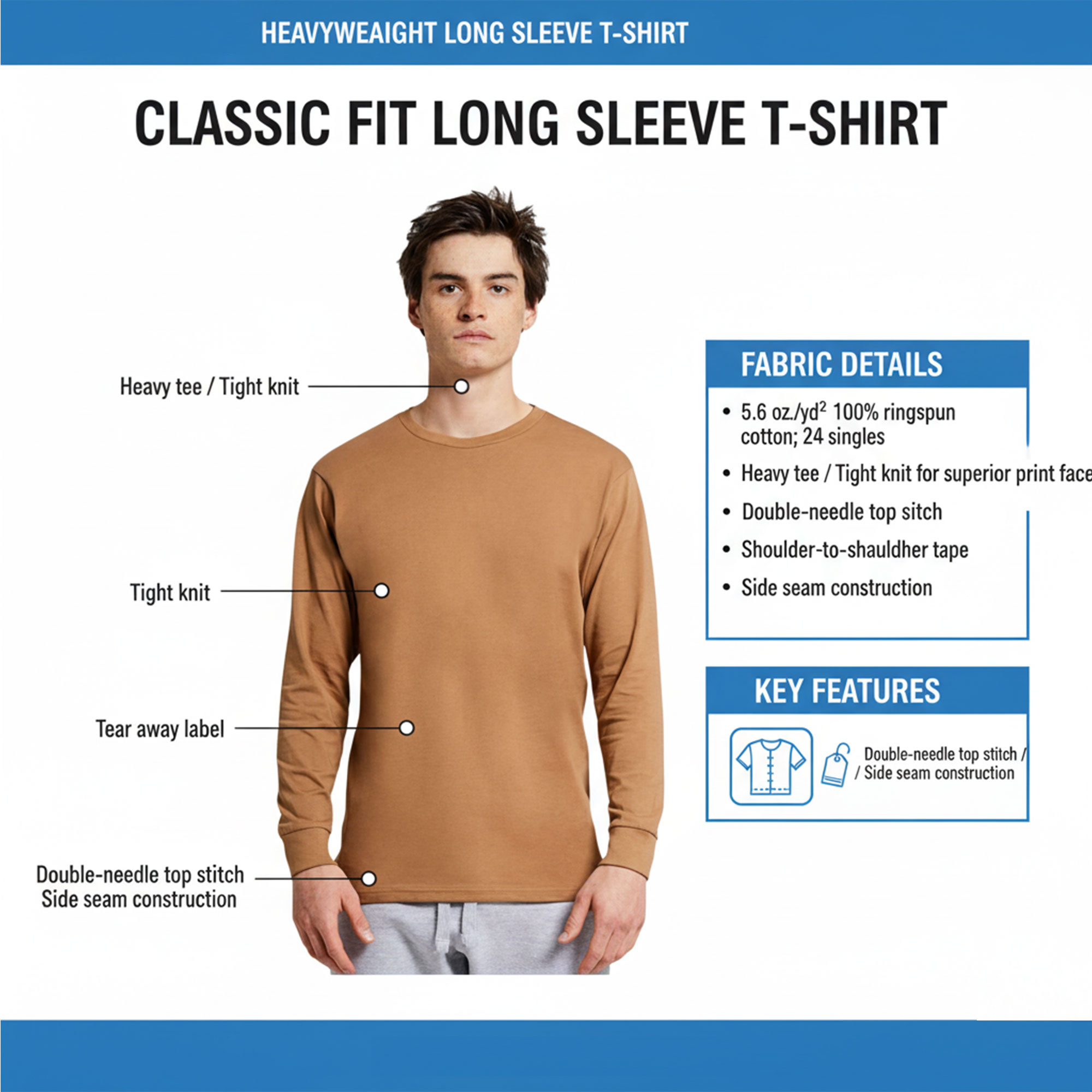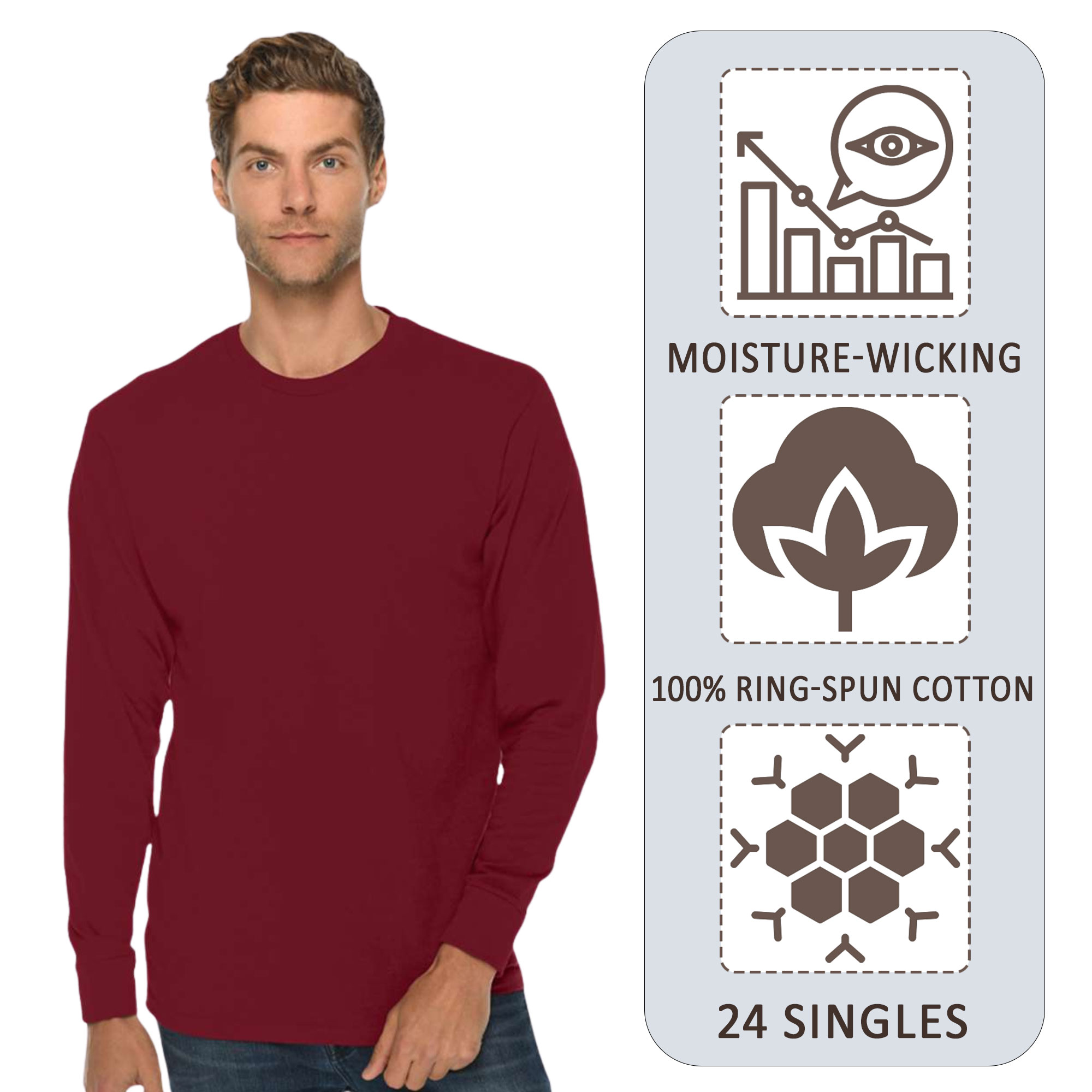 - 5.6 oz./yd², 100% ringspun cotton; 24 singles
